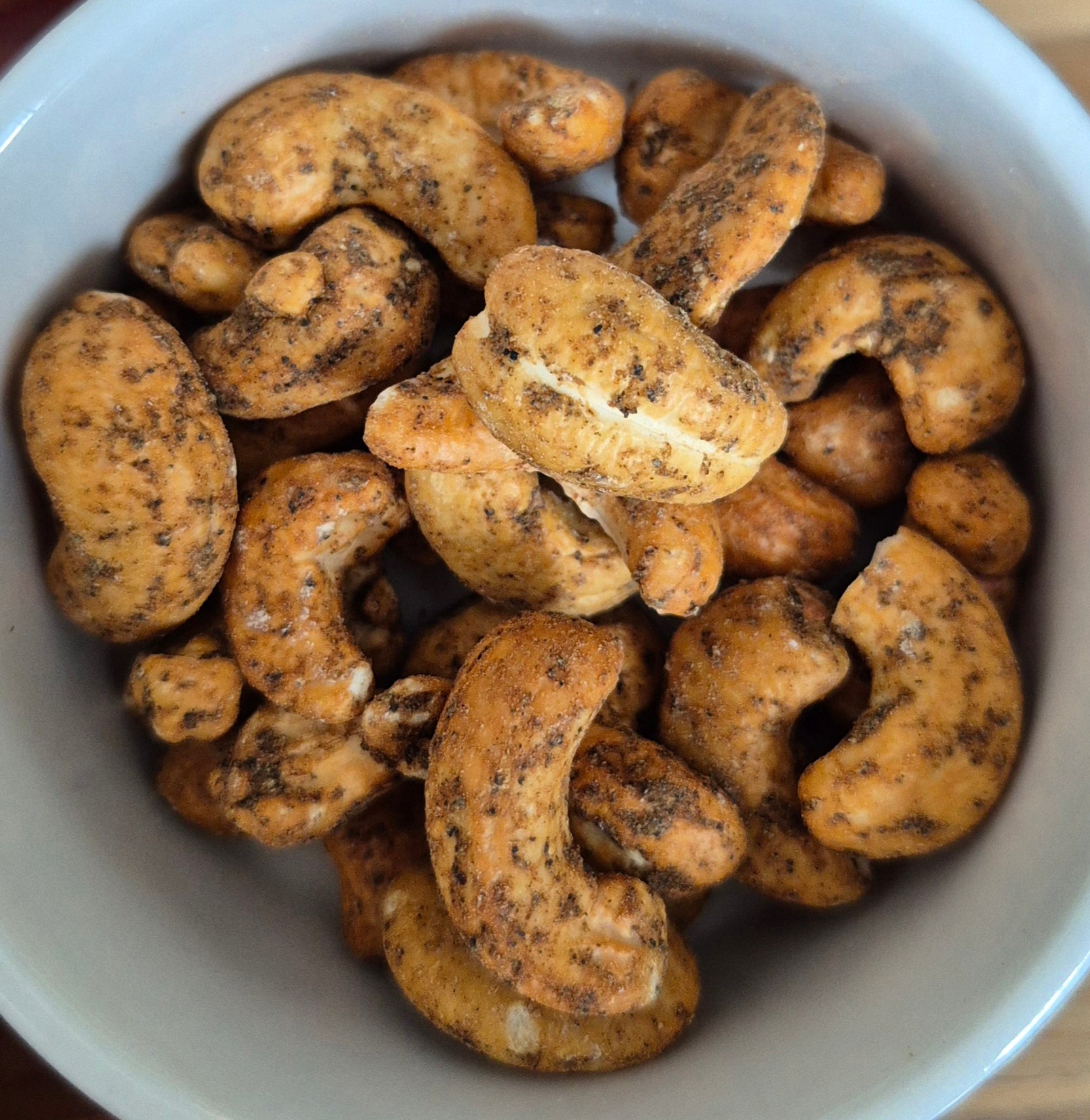 Ingrédients : Noix de cajou, sel de Guérande, oignon déshydraté, poivre noir, poivre de Malabar (0.5%), agent d'enrobage : gomme arabique. Produit issu de l'Agriculture Biologique.