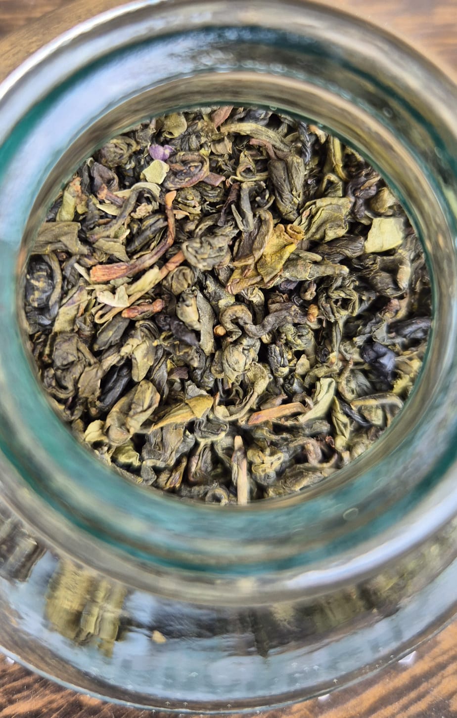 Thé vert Gunpowder à la menthe poivrée, véritable tradition au Maroc. Une boisson fraîche qui favorise la digestion.